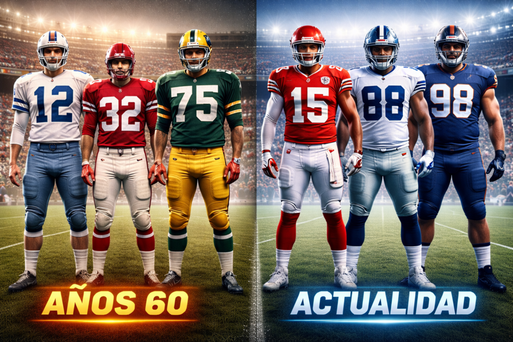 El peso de los jugadores NFL ha aumentado de forma constante durante décadas, pasando de físicos “normales” en los años 50 a atletas de élite extremadamente especializados en la actualidad.